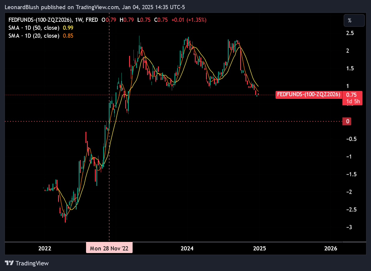 Expected Fed Cuts for 2025 & 2026 continue to dwindle. The markets may lose their shit if the below heads towards zero.