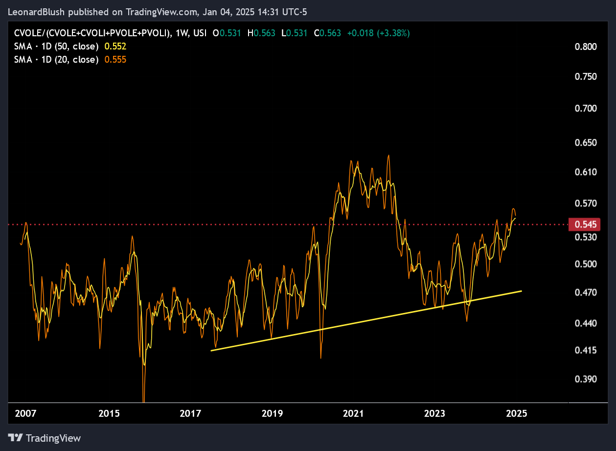 However you want to say it, recent option flows have been uber supportive of prices. If there’s cause for concern on the bulls part, this should be it. All that leveraged option buying and we’re flat past 2-3 months on the headline.