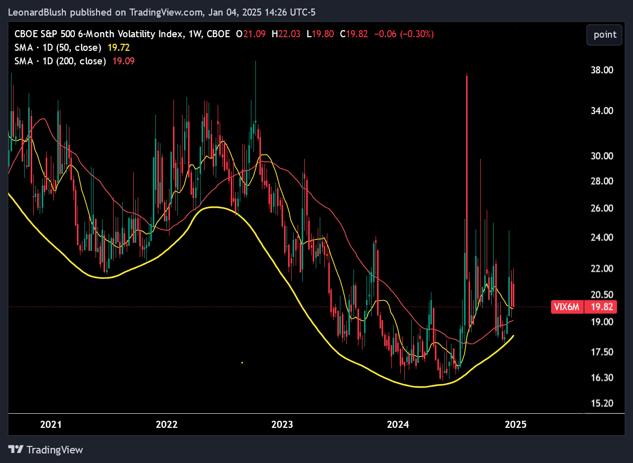 And it shows…6 month VIX, still stugling to get lows to downtrend (and no there is not an election in 2025).