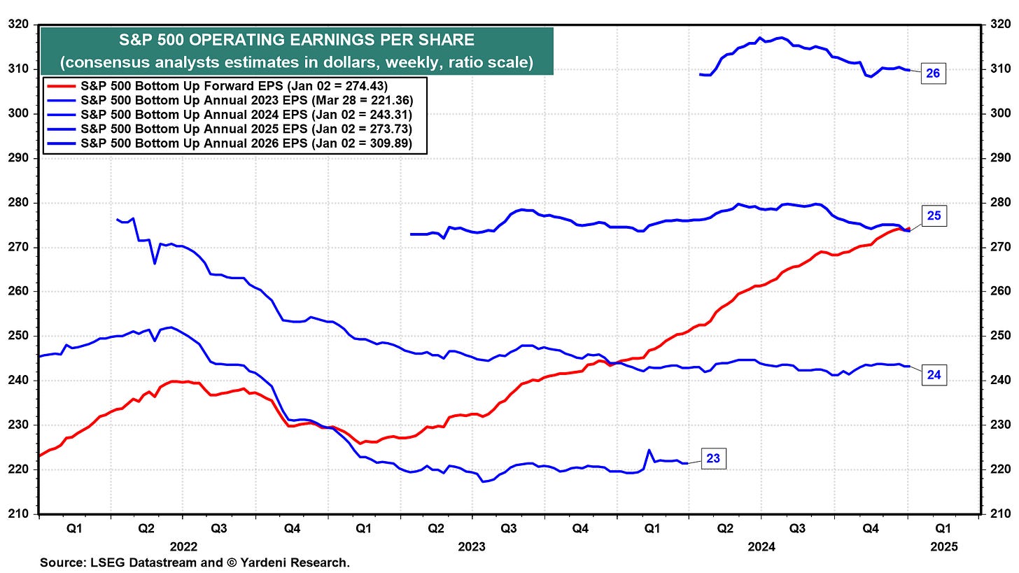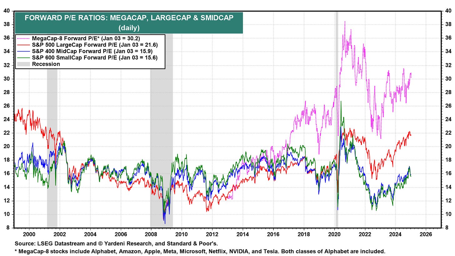 Remaining (at least for large caps) somewhere in the stratoshpere, with EPS estimates for 25 & 26 both currently trending down.